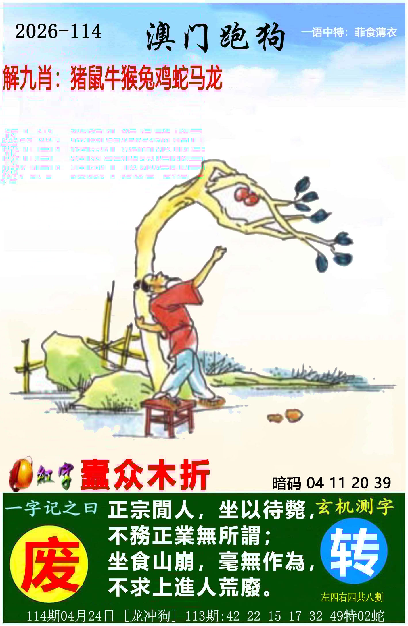 114期开奖时间2026年04月24 星期五)晚9:30开(农历三月初八 龙冲狗)114期【欲钱买洋洋得意的生肖】